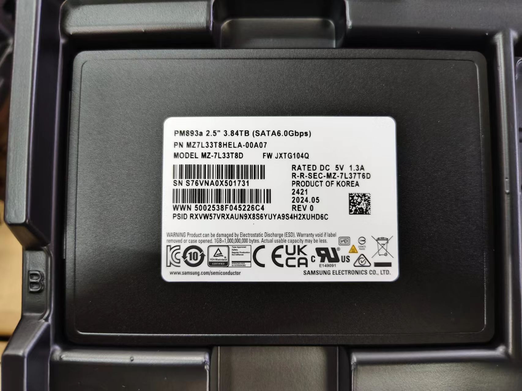MZ7L33T8HELA-00A07/00B07三星PM893a 3.84T 2.5寸SATA3企業級SSD